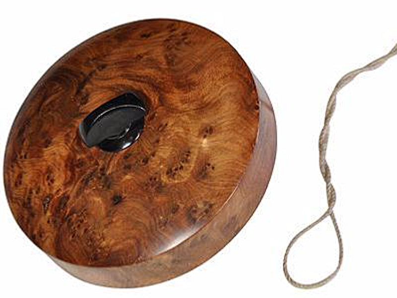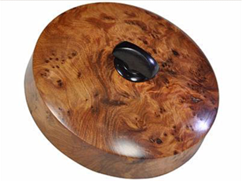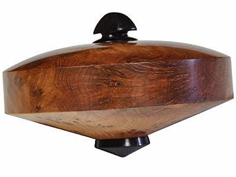 Hand made to a very high standard of craftsmanship, this top is made from two unusual woods, Sandarac Burl and African Blackwood. The top is 85mm in diameter.