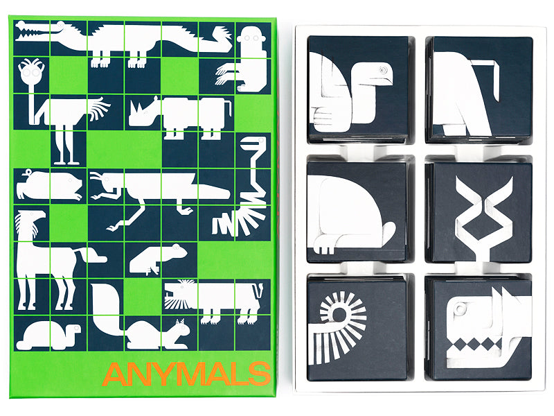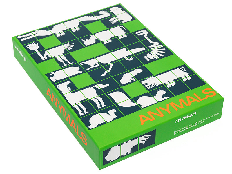 Designed in 1970 by the British graphic designer Ken Garland for Galt Toys, Anymals is one of the masterpieces of seventies game design. This new edition is produced by Architoys, a Portuguese company, dedicated to the design, production and sale of architectural toys, carefully respecting the original version.
