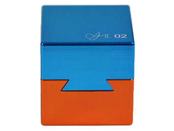 This elegant metal cube invites you to separate the two halves. However it is not as easy as it might appear. All four sides have an identical looking dovetail joint, which would suggest that separating the two halves is impossible! This is a great puzzle for trying out on your friends, or maybe having on your desk, to challenge visitors to your office! On the one hand, this looks like an 'impossible object' since it is not immediately obvious how the two pieces come apart. But there is more to this puzzles that that. When you initially present this puzzle to someone, there is no sliding, pulling or twisting movement they can perform that will separate the two halves. The solution is not hard - but only when you know how! Most people will struggle to solve it. Until you show them...
