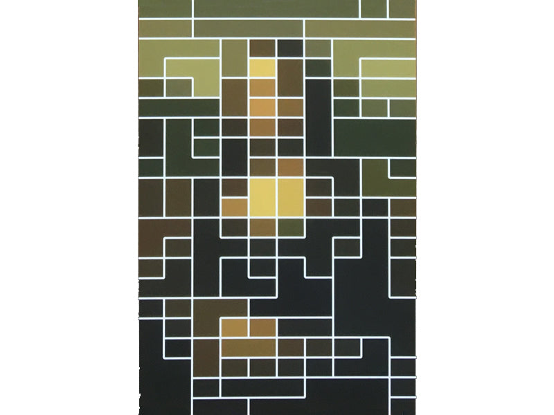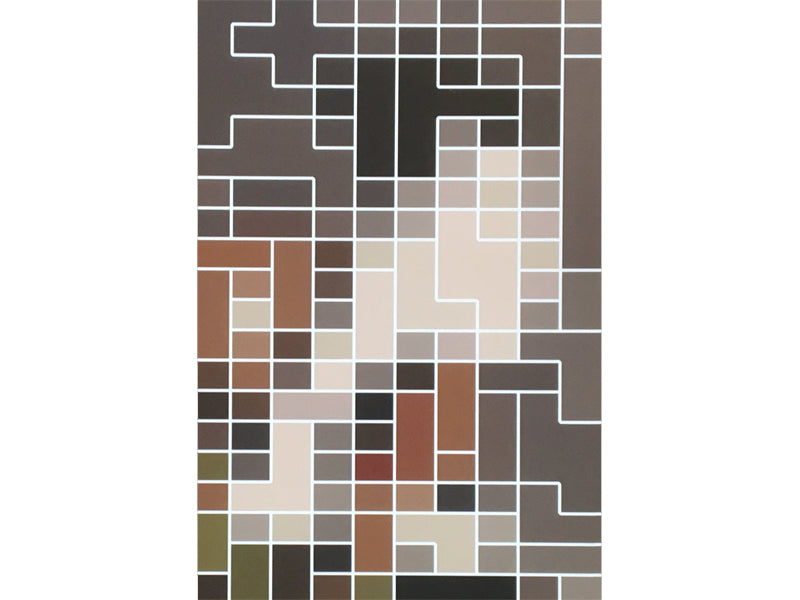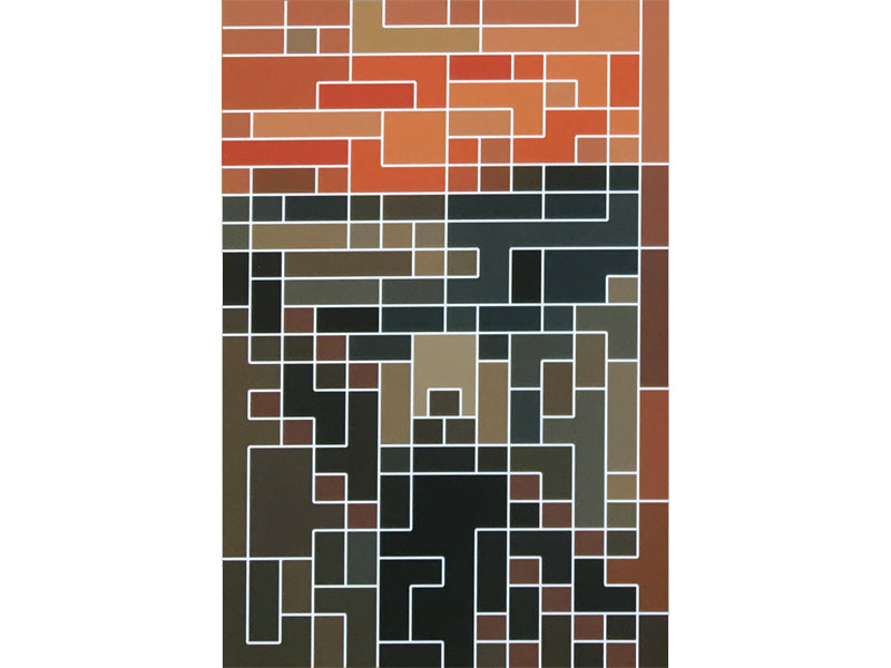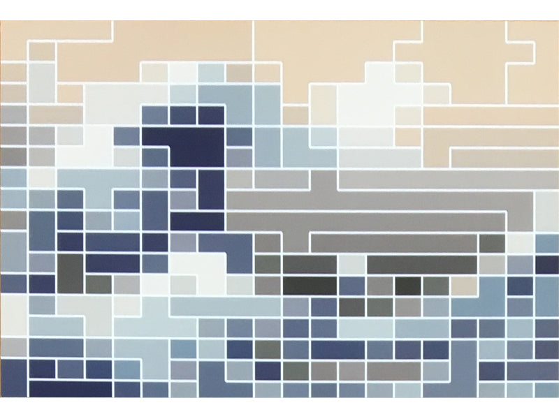 A set of 5 postcards, each of which has a simple pattern. At first, they just seem to be a random collection of coloured squares. But as you hold each postcard further away, the squares start to blur slightly, and you should be able to see a famous picture.
