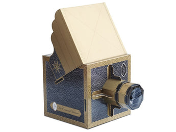 This cardboard construction kit allows you to build your own camera obscura. This optical instrument is the fore-runner of the modern camera. The lens at the front is used to focus an image, via an internal mirror, onto the transparent screen at the top. By placing a sheet of tracing paper on top of this transparent screen, you can view the image clearly, and also make a tracing of the outlines of the image.