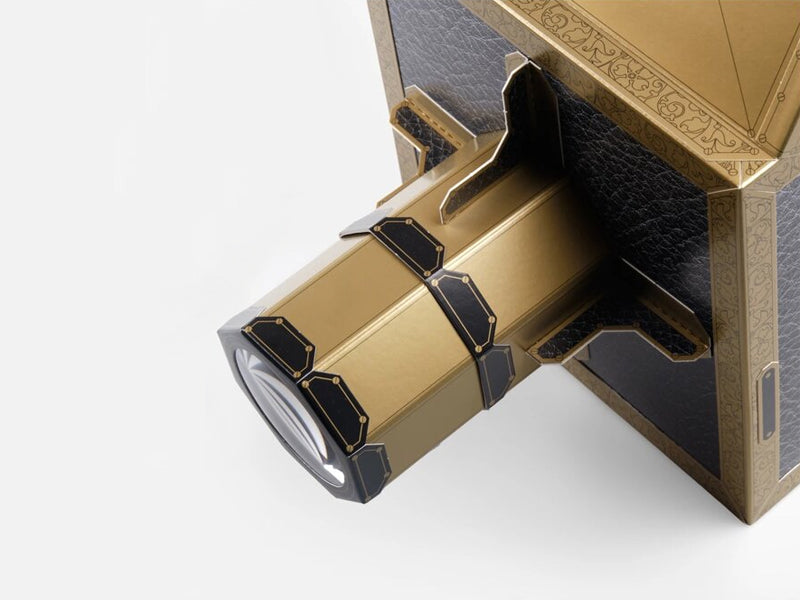 This luxury cardboard kit contains a number of sheets of heavy duty, pre-printed, pre-punched cardboard, plus lenses and all the other pieces needed to construct a camera obscura. You will need to provide the glue.