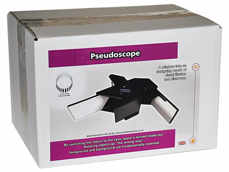 The Pseudoscope creates one of the most remarkable of all optical illusions, and was first described by Sir Charles Wheatstone in the 1830s. The Pseudoscope swaps the incoming images, so that the right eye sees what the left eye would have seen, and vice versa. The Pseudoscope therefore does to front and back what a mirror does to left and right. This means that foreground becomes background and visible background becomes foreground, or more simply, background advances, foreground recedes.