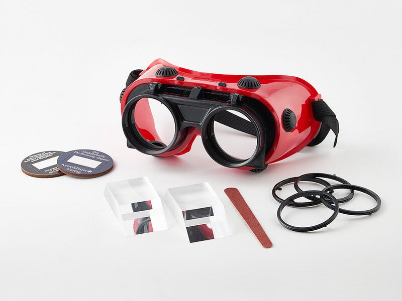 These amazing Reversing Goggles allow you to view the world upside down! The plastic goggles hold two Dove plexiglass prisms, which invert the image. Alternatively, you can adjust the prisms in order to create right-left inversion.